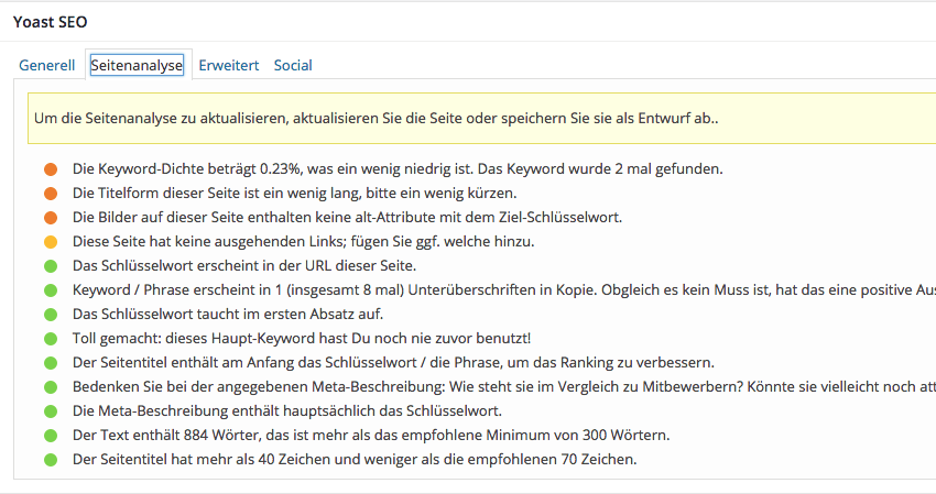 Yoast SEO Optimierungsbox