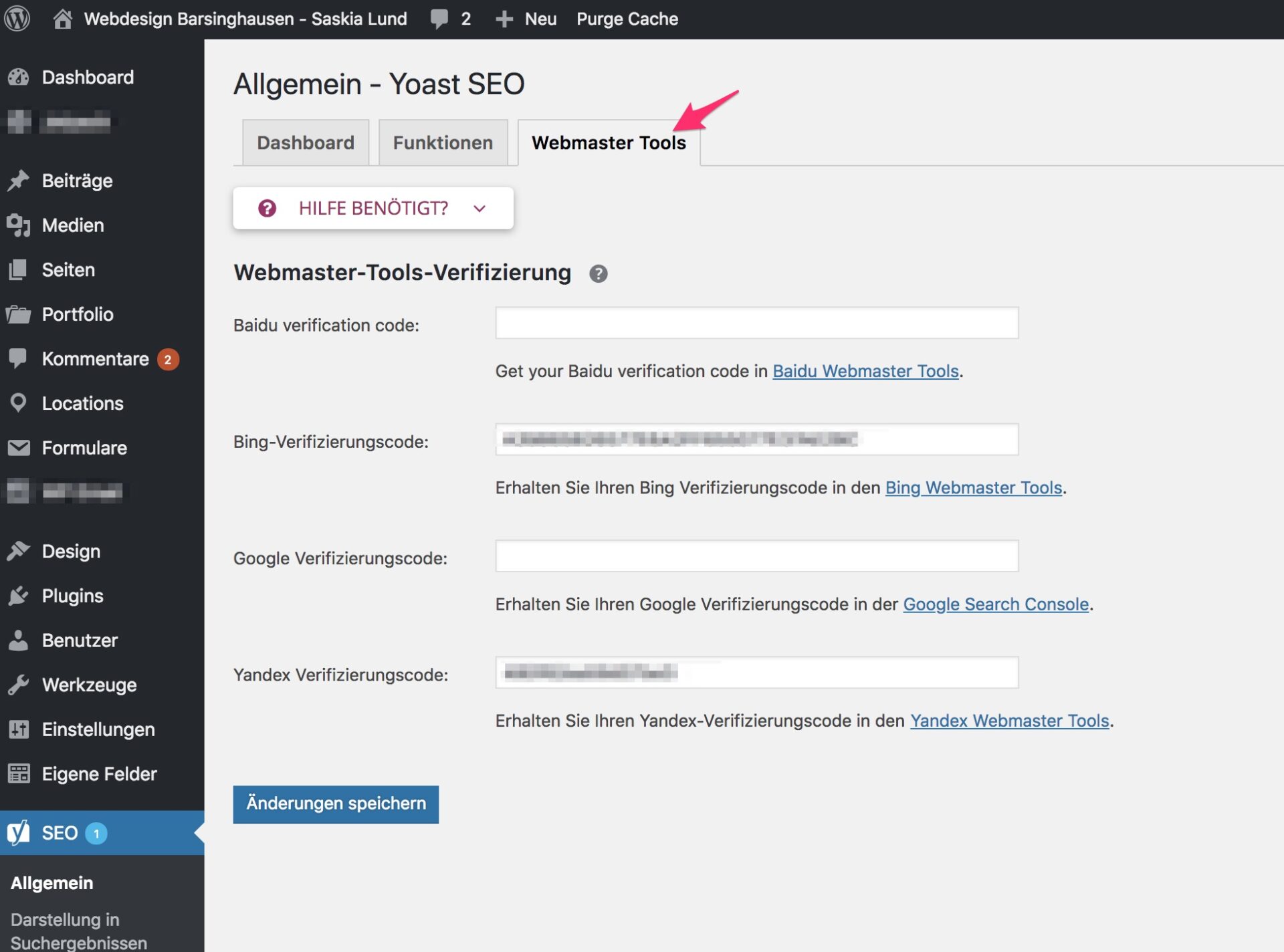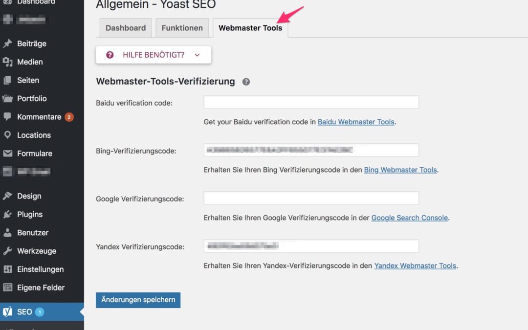 Yoast 7.x - Général - Onglet : Outils pour les webmasters