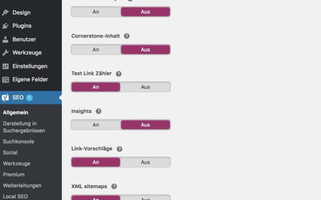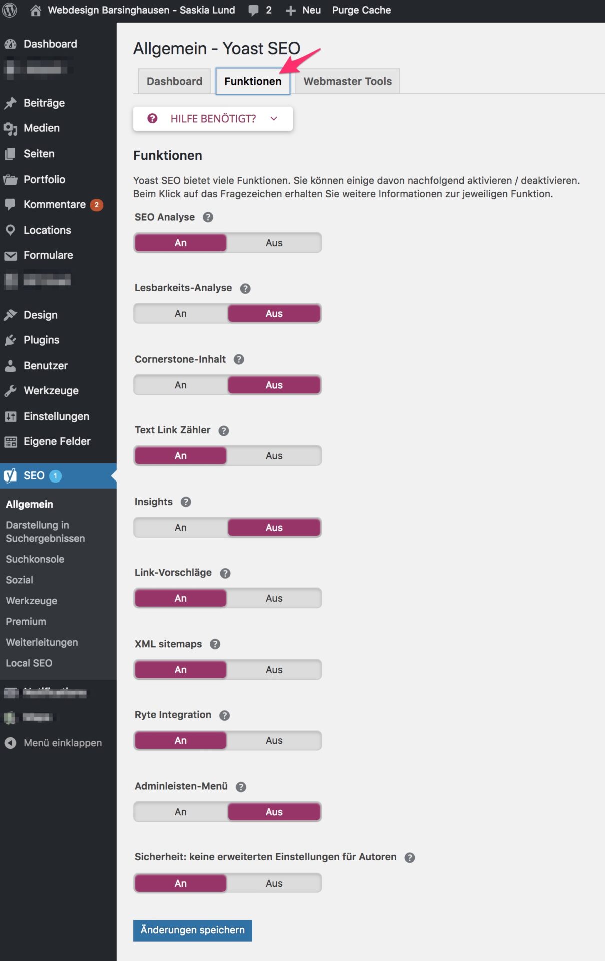 Yoast 7 - Allgemein - Reiter: Funktionen