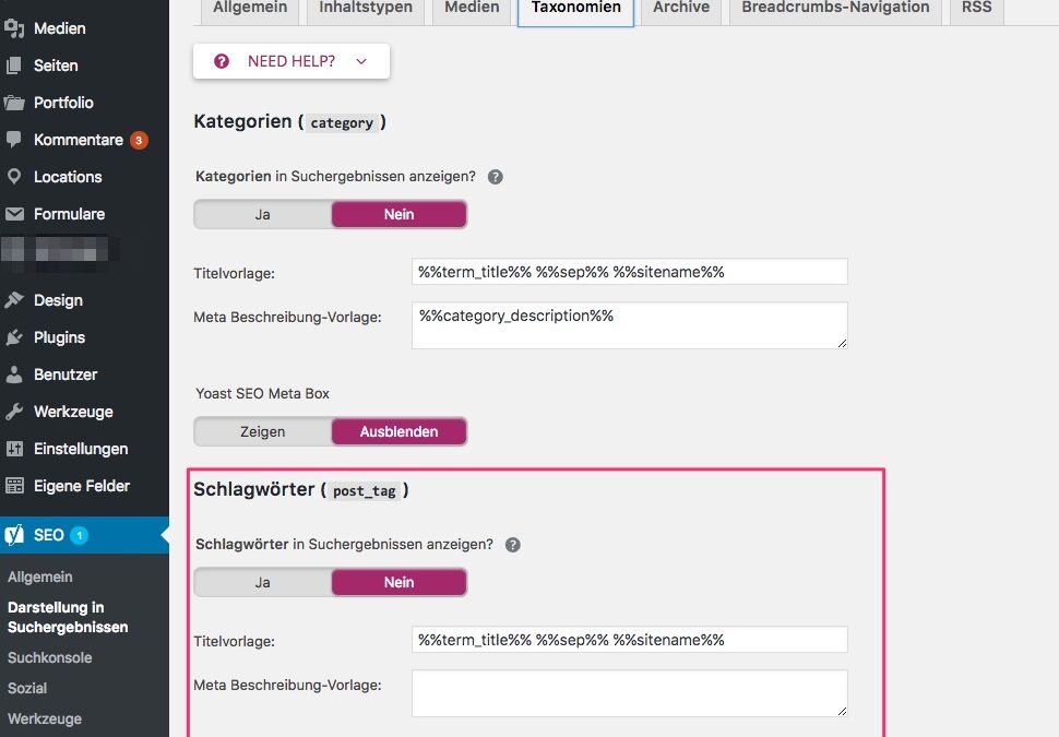 Yoast SEO 7.x Taxonomien